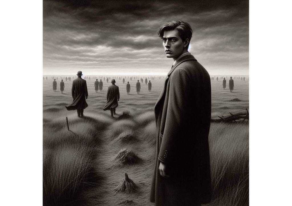 Et c’est un jeune homme qui regardait vers moi et qui ne me voit pas ;