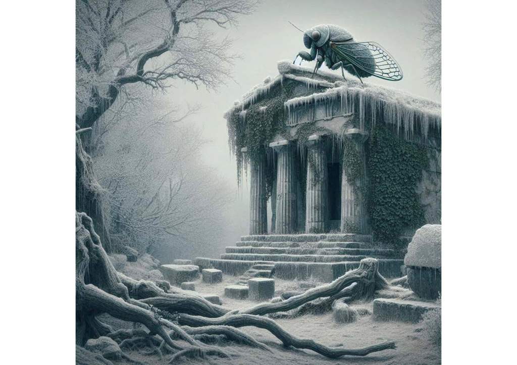C’est la citadelle Cicadas, où les cariatides sont des sauterelles en granit,