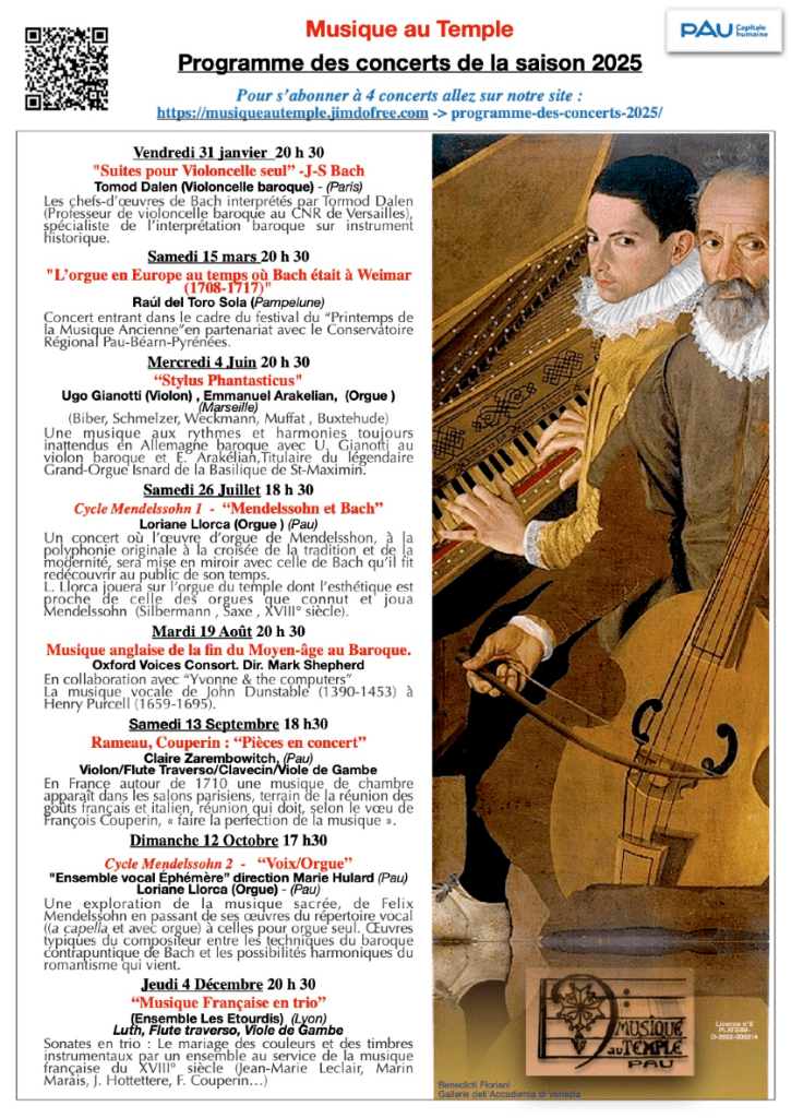 L. Llorca jouera sur l’orgue du temple dont l’esthétique est proche de celle des orgues que connut et joua Mendelssohn (Silbermann , Saxe , XVIIIème siècle).